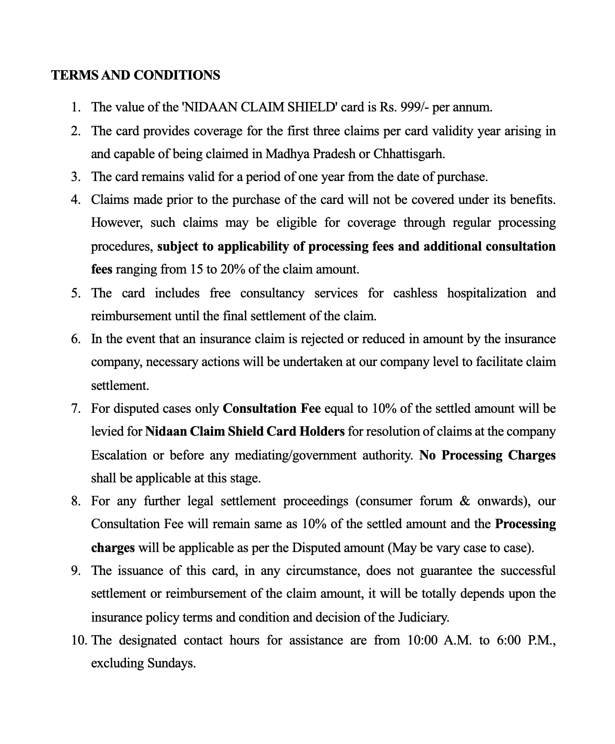 At Nidaan, our mission is to empower and advocate for our clients in their pursuit of fair and just insurance claims. We are committed to providing exceptional services and fighting tirelessly on behalf of our clients to ensure they receive the true claim they deserve. Our dedicated team of experts works diligently to navigate the complex insurance landscape, resolve disputes, and maximize claim settlements. With unwavering dedication and a client-centric approach, we strive to deliver transparency, integrity, and successful outcomes, bringing peace of mind to our valued clients during challenging times.